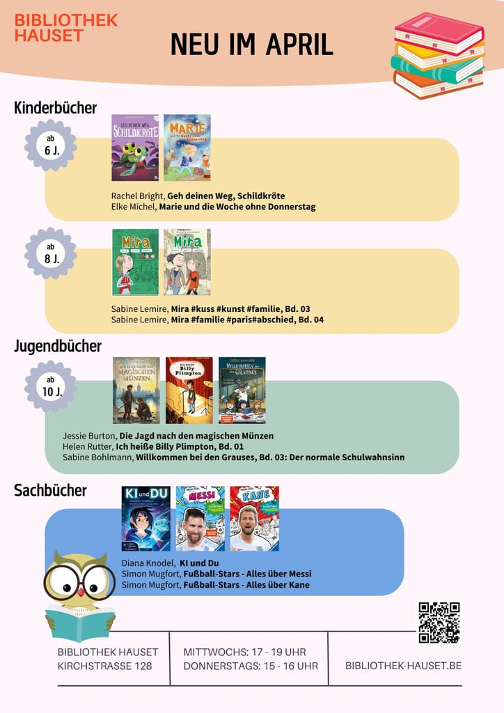Für die Gemeindeschule und den Kindergarten Hauset: montags und dienstags (13.30 - 15.00 Uhr) einmal im Monat (nach Absprache mit der Schulleitung)